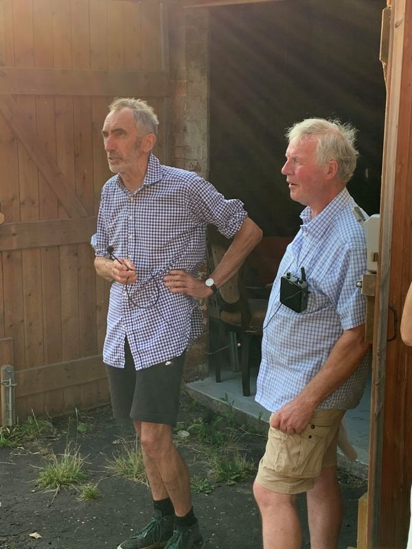 Henry Bealby and Nigel at the entrance to the Bealby workshop